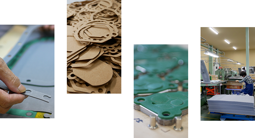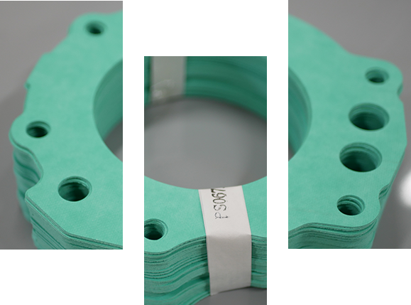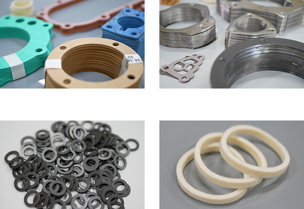 比較的軟質な素材の加工に適しております。 フィルムやシート、ガスケットやゴムパッキンなど 工業用部品、電子部品、自動車部品などの打ち抜きに 広く利用されています。